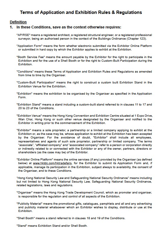 HKTDC-Terms of Application and Exhibition Rules & Regulations