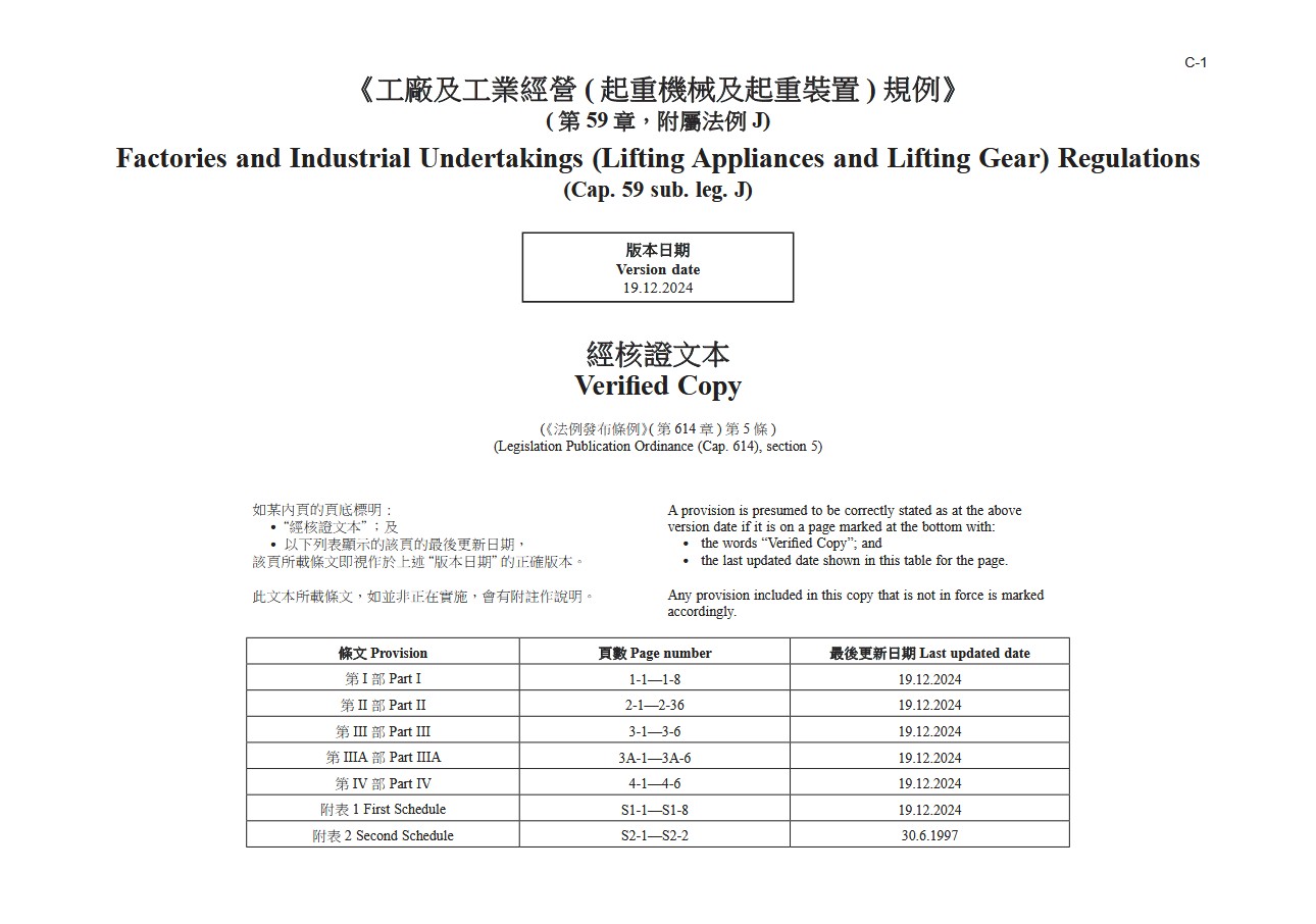 第59J章 《工廠及工業經營(起重機械及起重裝置)規例》
